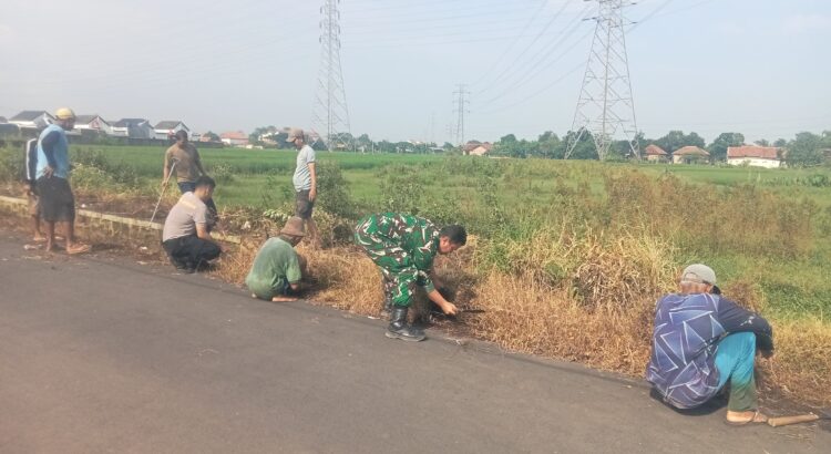 Babinsa koramil 0620-03/Talun Melaksanakan Karya Bakti Normalisasi Irigasi Bersama petani