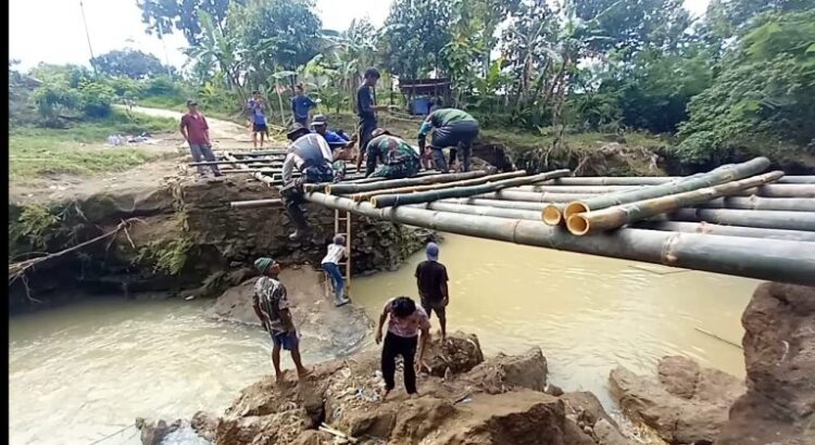 Jembatan Penghubung Desa Munjul–Sidamulya Ambruk, Koramil 0620-11/Astanajapura Sigap Bangun Jembatan Darurat