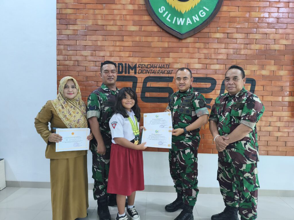 “Kami sangat bangga dengan prestasi yang diraih putri dari anggota kami. Ini menunjukkan bahwa semangat juang dan kedisiplinan bukan hanya tertanam di dalam diri prajurit, tetapi juga menular kepada keluarganya. Prestasi ini menjadi contoh positif bagi keluarga besar Kodim 0620 dan masyarakat luas,” ujar Letkol inf Mukhammad yusron,S.A.p.dalam acara penyerahan penghargaan di Makodim 0620.
