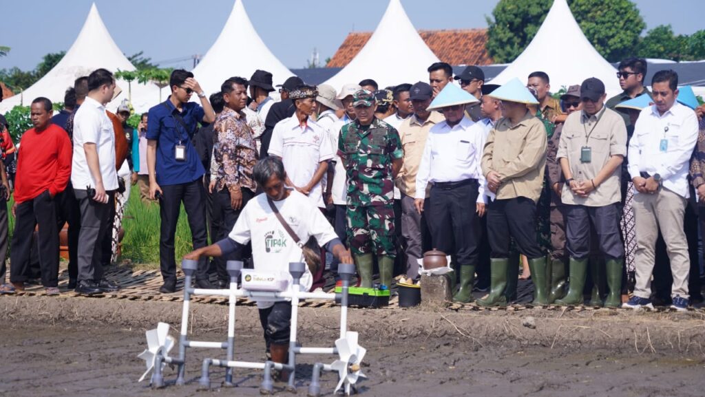 Kabupaten Cirebon – Komandan Korem 063/Sunan Gunung Jati Kolonel Inf Hista Soleh Harahap, S.I.P., M.I.P., M.Han menghadiri kegiatan Penanaman Perdana Padi Metode T1P4K dan Pendirian Koperasi Multi Pihak Percepatan Pengentasan Kemiskinan (KMP TASKIN) yang diselenggarakan oleh Badan Percepatan Pengentasan Kemiskinan (BP TASKIN) di Lapangan Blencong Kidul, Kelurahan Pasalakan, Kecamatan Sumber, Kabupaten Cirebon, pada Sabtu (11/10/2025).