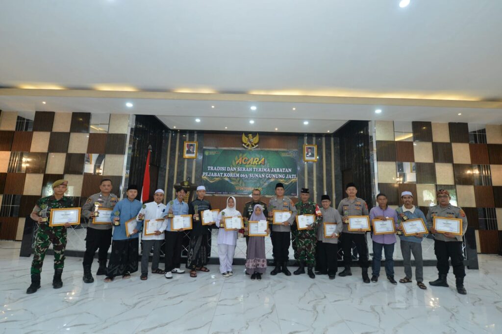 Kota Cirebon – Komando Resor Militer (Korem) 063/Sunan Gunung Jati menggelar Acara Tradisi dan Serah Terima Jabatan (Sertijab) sejumlah pejabat di lingkungan Korem 063/SGJ, serta pemberian hadiah kepada para pemenang Lomba Keagamaan dalam rangka memperingati HUT ke-80 TNI Tahun 2025, bertempat di Aula Sunan Gunung Jati Korem 063/SGJ, Jl. Brigjen Darsono, Kota Cirebon, Jumat (10/10/2025).