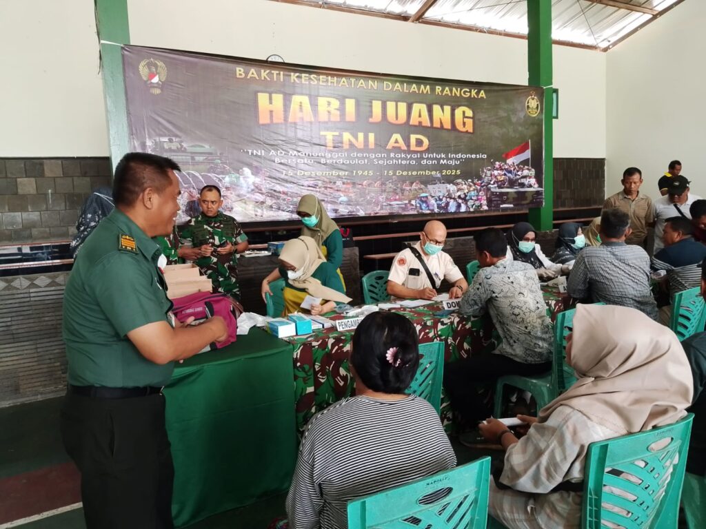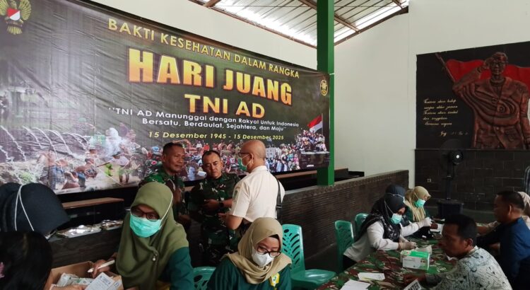 Cirebon, (10-12-2025)— Dalam rangka memperingati Hari Juang TNI Angkatan Darat (AD) tahun 2025, Komando Distrik Militer (Kodim) 0620/Kab. Cirebon melaksanakan kegiatan Bakti Kesehatan yang bertujuan untuk meningkatkan kesehatan masyarakat di wilayah Kabupaten Cirebon. Kegiatan ini berlangsung di makodim 0620/kab.cirebon dan diikuti oleh keluarga TNI dan warga sekitar.