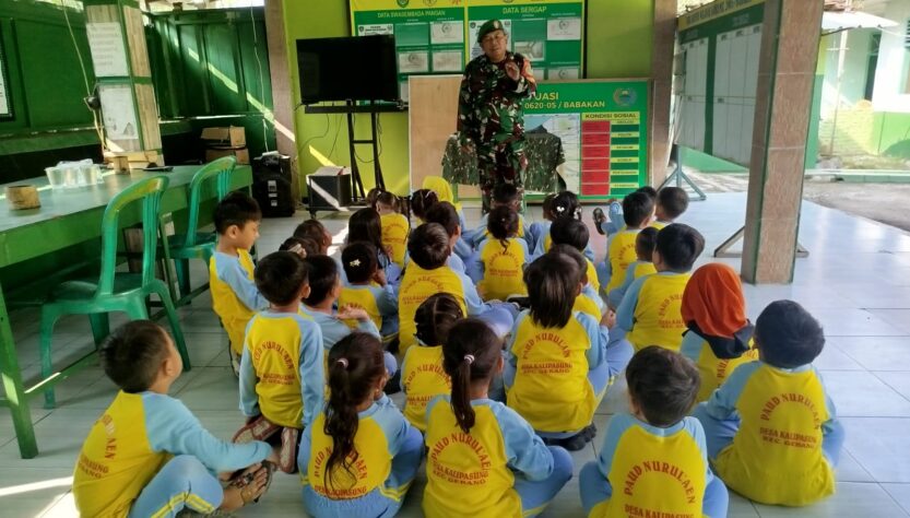 Kegiatan yang berlangsung di Markas Koramil 05/Babakan ini bertujuan untuk mengenalkan lingkungan TNI kepada anak-anak sejak dini, sekaligus memberikan edukasi dasar mengenai kedisiplinan, cinta tanah air, serta wawasan kebangsaan dengan pendekatan yang menyenangkan.
